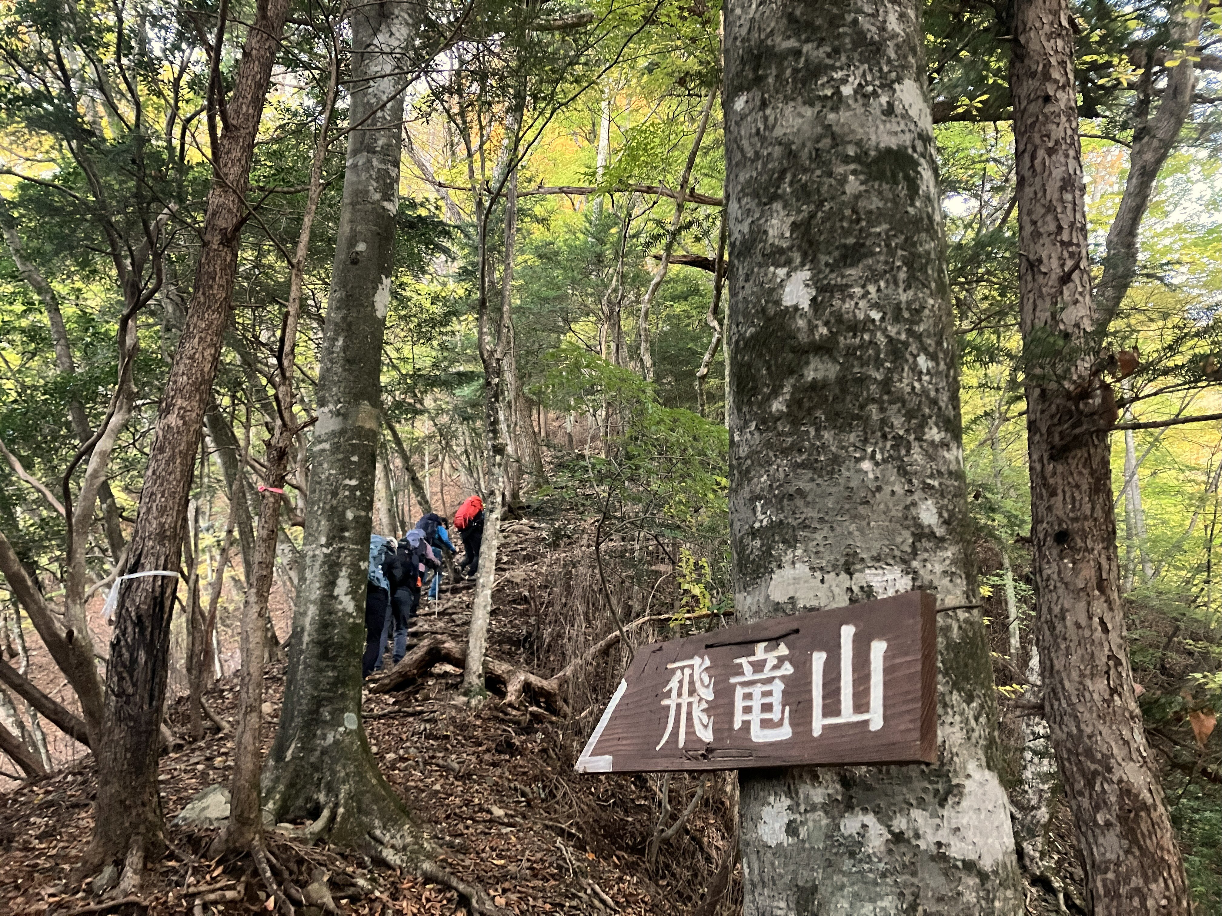 前飛龍や熊倉山を通過すると、紅葉の彩も賑わってきました。