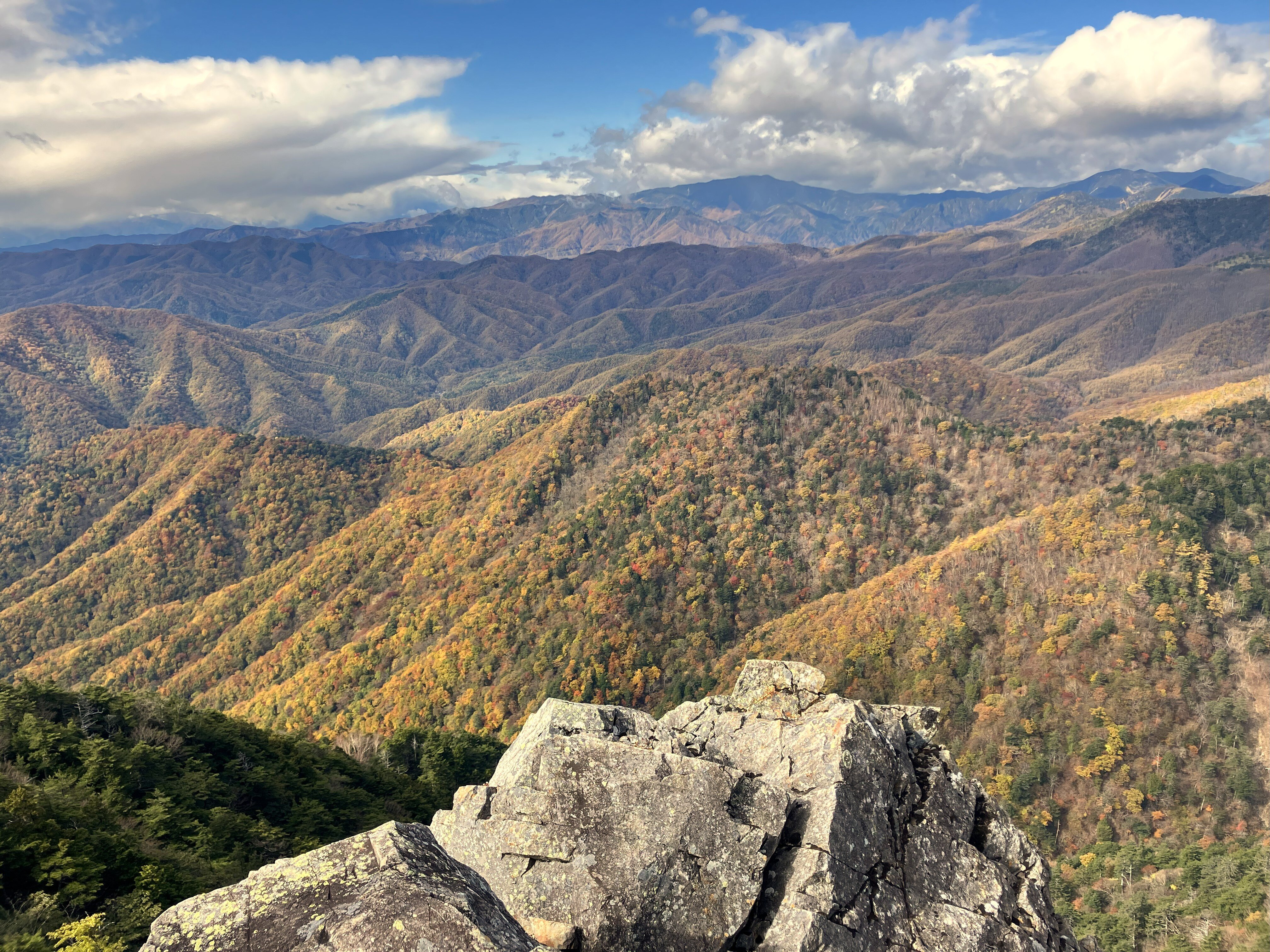涼しい気候ながら風もなく、一部足場が悪い箇所もありましたが、紅葉が素晴らしく途中眺望もあり、順調に標高を上げていきます。