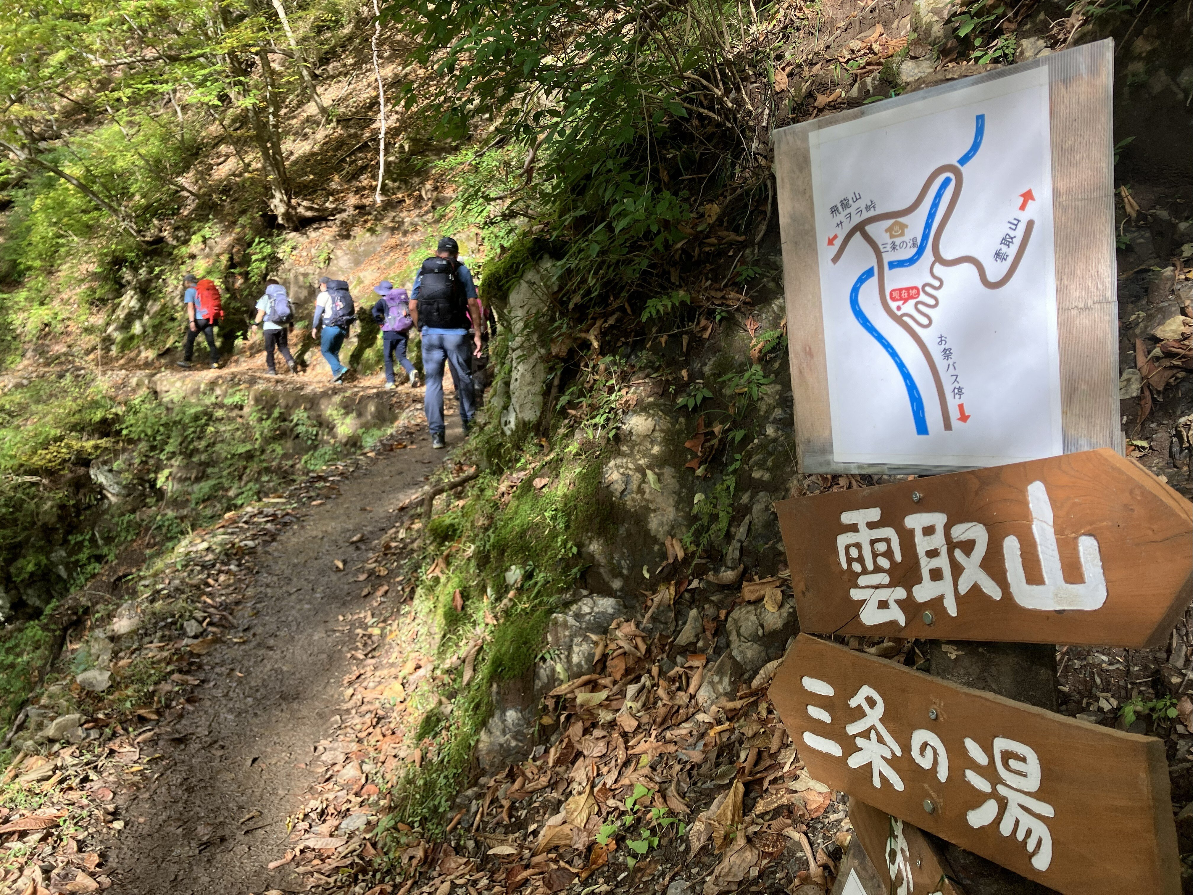 歩きやすいものの、長い後山林道を経て、三条の湯へ向かいます。