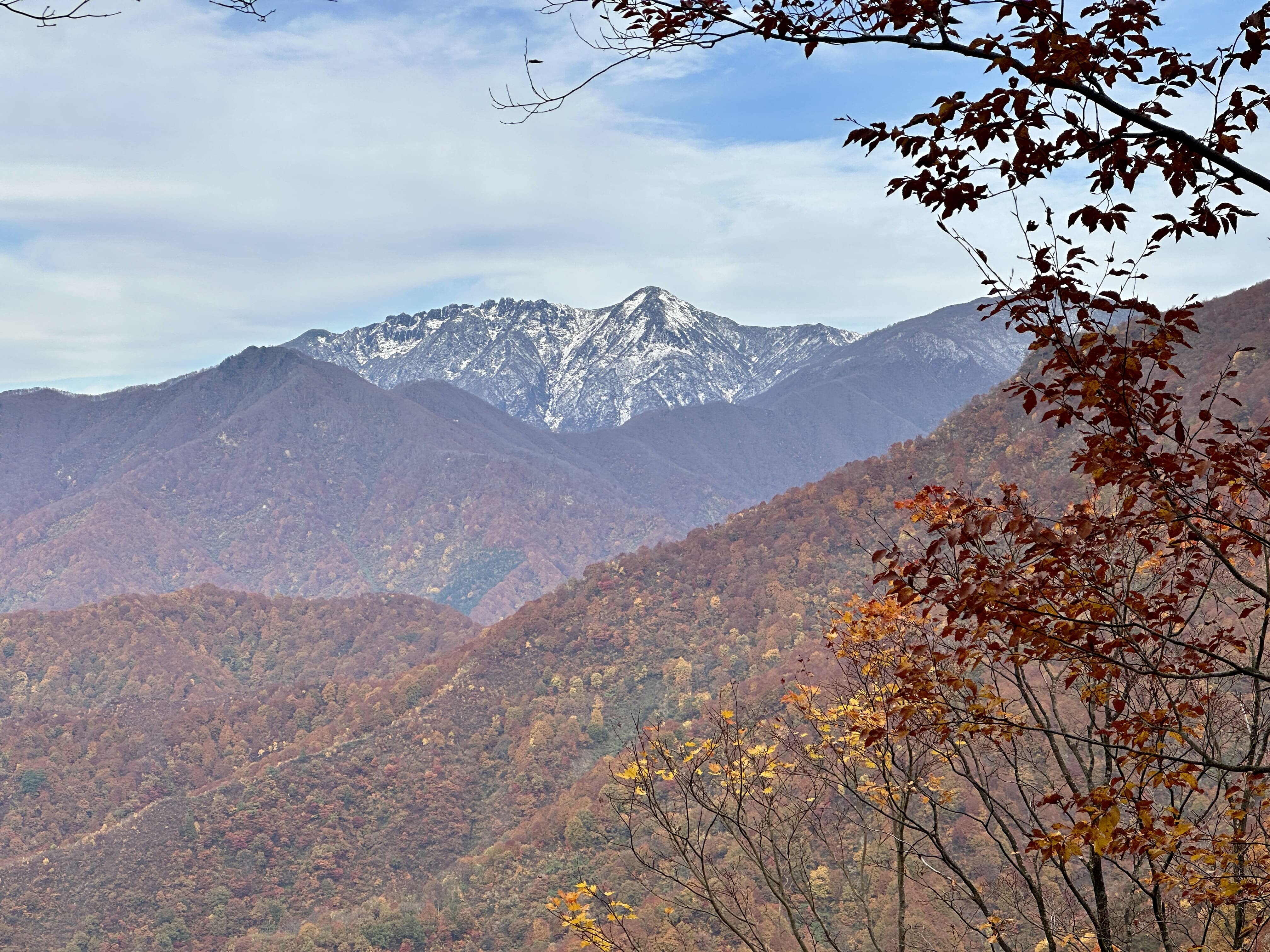 この日は初冠雪のニュースから約3週間、写真ではわかりにくいのですが雪をかぶる姿が勇ましいです。